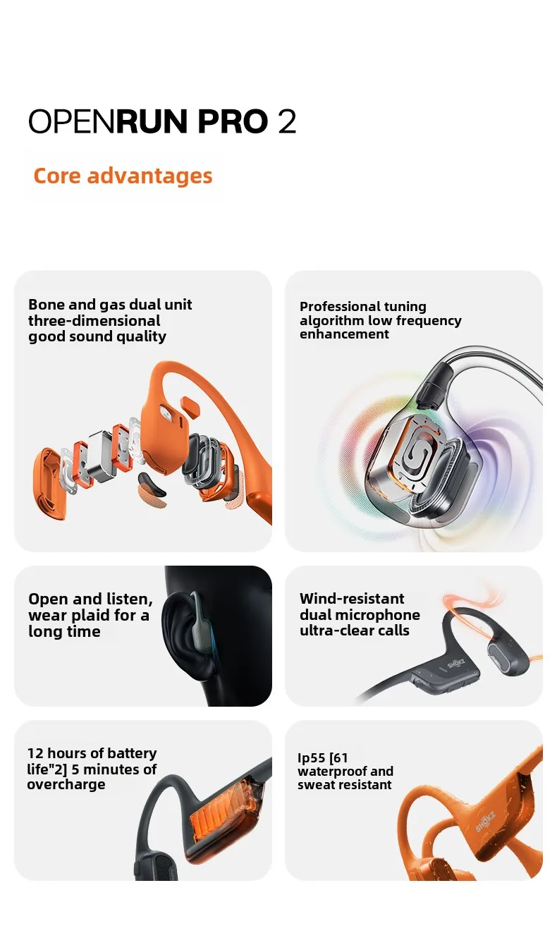 Original Openrun Pro 2 S820 Bluetooth Earphones IP55 Waterproof Bone Conduction Headphones Music Sports Wireless Earbuds