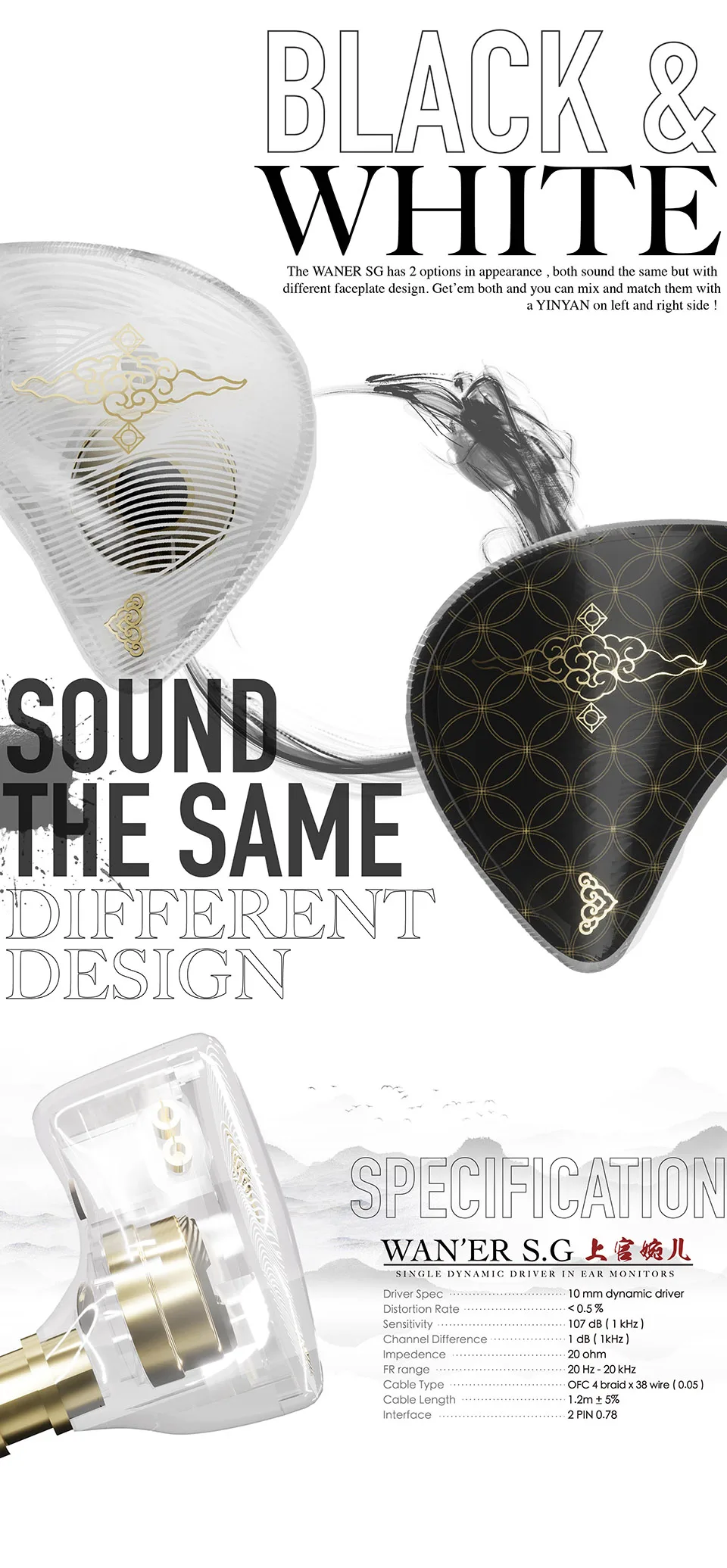 TANGZU WAN ER SG HiFi 10mm Dual Cavity Dynamic Driver IEM In Ear Earphone Detachable 0.78mm 2Pin Music Bass Vocal